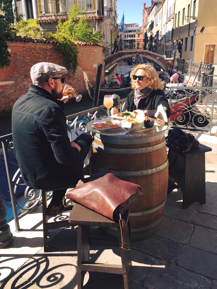 Nella bella stagione sono a disposizione anche alcuni tavolini all’aperto, dove ammirare il passaggio delle gondole sul canale.